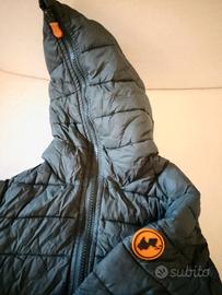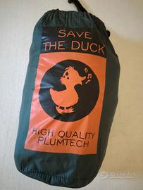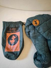 Bellissimo piumino Save the duck bimbo. Taglia 2 anni. Color verde bosco con interno blu scuro. Particolari arancioni. Completo di Sacca porta piumino. Come nuovo.