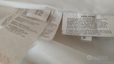 Vendo piumino in vera piuma. Colore panna. Marca BRUMS. Con chiusura a cerniera più bottoni. Con cappuccio staccabile e tre tasche davanti. In perfette condizioni. Pari al nuovo.