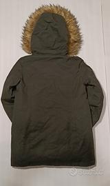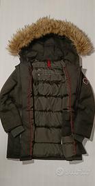 in vera piuma, scherma da freddo e acqua. taglia 10 anni, pelliccia staccabile, chiusura con zip e bottoni, taschino interno.