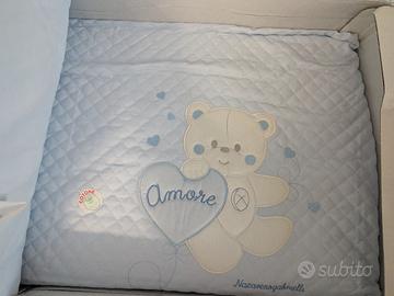 Piumone lettino con paracolpi, ricamato e sfoderabile. Color Azzurro Bebè.