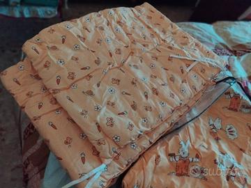 Piumoni per culla usati: uno giallo con disegni comprensivo anche di paracolpi per culla:160× 100 L'altro solo piumone bianco con pagliacci:150 ×100 Vendita a blocco