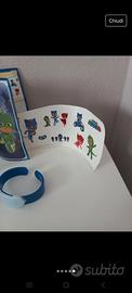 Action figure,card,bracciale e adesivi dei PJ mask Superpigiamini altezza cm 15