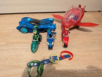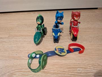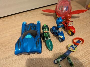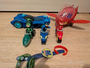 Collezione PJ Masks con le tre moto, la macchina con luci e suoni più aereo gufetta, orologi e bracciale. Solo ritiro a mano. Prezzo non trattabile.