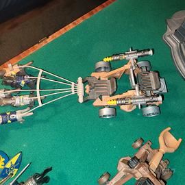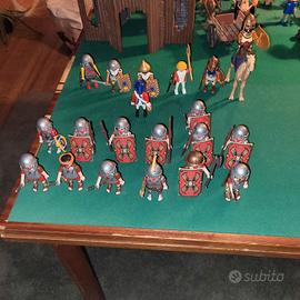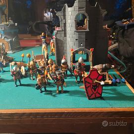 Il set di play mobile Novelmore ovvero i blu comprendono 11 personaggi armati di cui 2 a cavallo con una catapulta e un carro trainato da 5 lupi e 4 lupi da combattimento. Poi in un secondo set ci sono 10 personaggi armati con 2 carri balestra, una fortezza , un carro e una balestra normale. Poi il terzo set comprende 13 soldati romani antichi muniti di scudo, lance e spade e insieme ad una ciurma di soldati ribelli con 7 personaggi armati. Infine c'è l'ultimo set che comprende un castello magico con 2 cannoni non originali ma comunque funzionanti con munizioni e 2 personaggi. In generale le condizioni sono perfette anche se non ci sono tutti i pezzi ma ne mancano davvero pochi vedi foto e non ho conservato le scatole originali. Per ulteriori foto chiedete. C'è anche la possibilità di prendere dei set in particolare senza prenderli tutti su richiesta. E i prezzi sono trattabili.