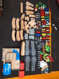 trenino legno play time della lidl, vari set, parcheggio, ospedale, ecc. tutto quello che vedete e più. invio dettagli e altre foto. il tutto è stato usato, tutto in ottimo stato, qualche binario colorato, dei due locomotori uno non cammina bene. molte auto e personaggi. infiniti binari, ponti ecc. sono compatibili con binari ikea lidl e altri simili. vendo in blocco. accetto proposte. necessità di doppia spedizione o ritiro in loco data la mole.