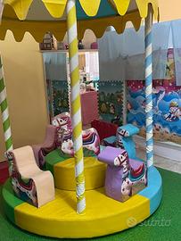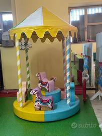 Vendesi per cessante attività attrezzatura completa per ludoteca con playground a due piani di dimensioni 9x7, 3 scivoli, 2 altalene, piscina con palline colorate, possibilità di salire in 3 punti. Giostra elettrica per 6 bambini. Tappeto elastico di dimensione 3x3 per 4/5 bambini.Ottimo stato. Possibile utilizzo in ludoteche, parco giochi, sale per feste, baby parking, patti, miniclub e centri commerciali. Disponibile in visione previo contatto. Vendibile anche separatamente.