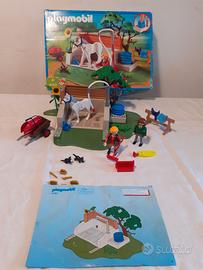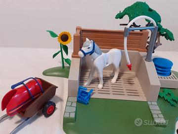 Vendo un set Playmobil 4193 usato. E' il lavaggio del cavallo con addetta, attrezzi, 2 gatti albero girasole cariola e pompetta funzionante