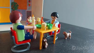 Casa portatile a 2 piani con comoda maniglia. Cucina, bagno, camera da letto, soggiorno con accessori e 3 personaggi con 2 cani. Condizioni ottime. Usata pochissimo e ben conservata.