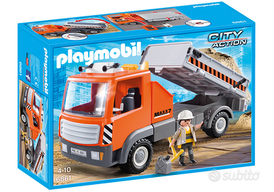 Camion con Cassone Ribaltabile scatola con personaggio e accessori come tanica della benzina ed estintore.