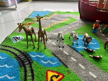 Vendo bellissimo set Playmobil Arca di Noè, completo di barca, animali e personaggi. Include giraffa, scimmia, pappagalli, cani, figure umane e vari accessori (lanterna, balle di fieno, fuoco, ecc.). Tutto in ottime condizioni, e con istruzioni 4-10 anni