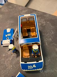 1 furgone della polizia playmobil con tetto removibile, porte posteriori apribili, sedile posteriore ribaltabile, porta scorrevole apribile, luci e suoni e molto altro