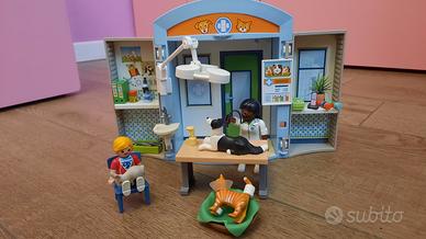 vendo set playmobil clinica veterinaria che si chiude ad armadio e contiene tutti i pezzi, comprensiva di dottoressa, tre animali, un bambino, sedia e scrivania e tanti oggetti come da foto.
