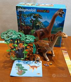 branchiosauro con cucciolo il gioco e completo di ogni pezzo , la scatola e in condizioni perfette contiene anche istruzioni .