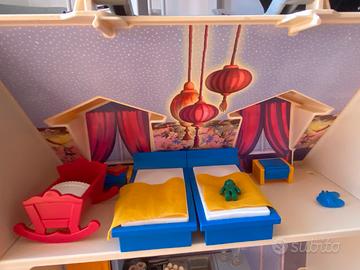 Presenta 4 stanze. È completa di personaggi, animali ed accessori(per il bagno, la camera da letto, la cucina ed il salone). Non presenta parti danneggiate meno di due piccoli oggetti.