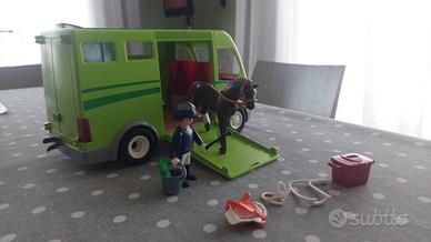Set Playmobil "Furgone per Il Trasporto dei Cavalli". Gioco usato ma in ottime condizioni.