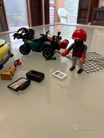 Vendo giochi playmobil come da immagini: casa vacanza 6887, rapinatore su quad 6879, auto polizia Porsche 70066 , luci e suono sirena funzionanti (ha una ruota che non sta attacca da sola . Attaccata con schotch dove c è l attacco o con colla ( la ruota gira come le altre come da foto ). Senza imballo .