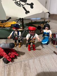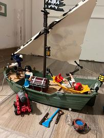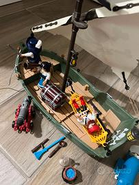 Nave Pirata con Motore Subacqueo funzionante, tre pirati accessoriati, vela, cannone funzionante, forziere del tesoro pieno di monete d’oro.