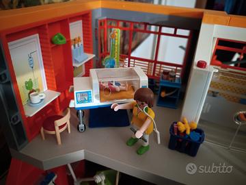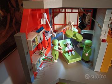 Introvabile ospedale pediatrico Playmobil a 3 PIANI (piano aggiuntivo!) con sala operatoria dotata di luci, radiologia, terapia intensiva neonatale, ascensore.
