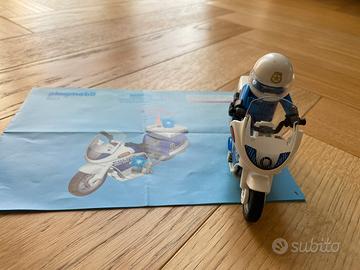 Vendo poliziotto in moto Playmobil 6923, completo di istruzioni e di tutti i pezzi presenti nelle foto. Il lampeggiante funziona.