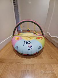 Il classico "nido" - una ciambella gonfiabile con un rivestimento in stoffa trapuntato nella parte centrale - diventa triangolare, per offrire un migliore sostegno laterale al bambino. E' un ambiente multisensoriale adatto sin dal primo mese di vita, che successivamente permette l'esplorazione di tutte le superfici al bambino che sa stare seduto. Il nido propone 8 attività, con superfici tattili,che incoraggiano sia la coordinazione occhio-mano che le abilità manipolative. Il rivestimento è lavabile in lavatrice. Il diametro esterno misura 90 cm.