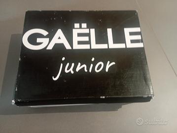 polacchino colore silver marchio Gaelle n, 36 con borchie esterne in entrambe le scarpe e cerniera interna .con lacci originali Gaelle junior.infossate pochissime volte