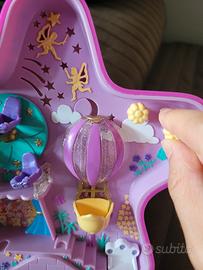 polly poket ancora funzionante, le luci si accendono e girando tre perni si può far ruotare una pedana, una ruota panoramica e muovere una mongolfiera. Due scomparti per conservare le sue fatine.