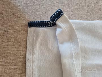 Polo di cotone da bambino, a maniche lunghe, con profili blu, anche negli spacchi laterali. Marca Blukids. Anni 5-6, 116 cm.