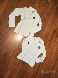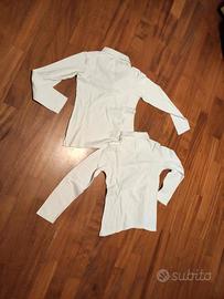 2 Magliette bambina, in puro cotone, a maniche lunghe, colore bianco, tipo Polo. Utilizzate pochissimo. Adatte per divisa scolastica, vendibili anche separatamente.