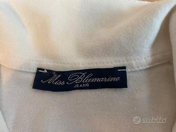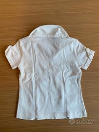 polo bianca ccon scollo a V, colletto e maniche corte risvoltate con patella e bottone.