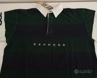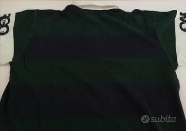 Polo manica lunga con piccoli spacchi laterali e polsini con elastico Tessuto 100% cotone Fantasia a righe blu e verdone Brand I.K.K.S. Taglia 12 anni Nuovo con cartellino