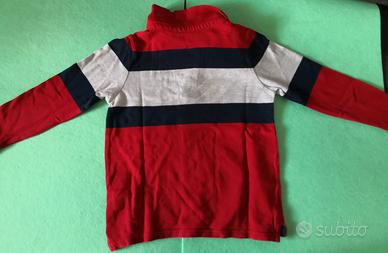Polo manica lunga bambino Okaidi taglia 6 anni. Colore blu, rosso e bianco. No buchi o imperfezioni. Usato poco, in ottime condizioni. No animali, No fumatori
