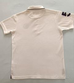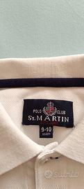 Maglietta polo maniche corte, per bambino 9-10A (altezza cm. 140, torace cm. 70), marca Polo Club St. Martin, colore bianco perfetto , applicazione come in foto, 100% cotone.