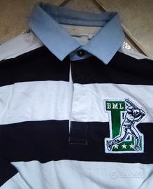 polo maniche lunghe bambino indossata poche volte perfette condizioni . tg 9 anni . colore bianca con strisce blu , colletto stile jeans . con polsini . Oviesse