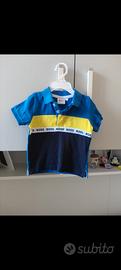 T-shirt polo neonato Boss baby. Nuova, senza cartellino, mai indossata ma solo lavata. Taglia 9 mesi (71 cm). In due diverse tonalità di blu e giallo. 100% cotone
