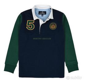 Polo blu e verde manica lunga Polo Club St Martin tg 9-10 anni, nuova con cartellino, altezza 134-140 cm
