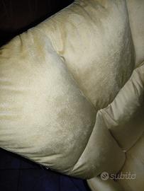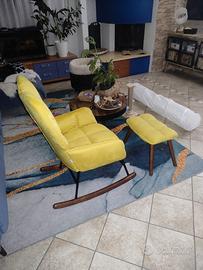 poltrona a dondolo in velluto ocra completa di sgabello piedi in legno noce