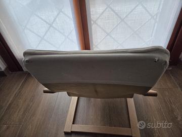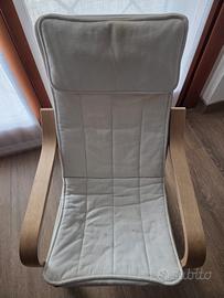 Seduta in tessuto robusto, bianca e gambe in legno.