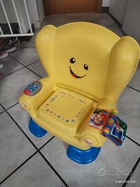 Poltrona gioco per bimbi 1/4 anni , ha il sensore sulla seduta , con piccolo contenitore , vari suoni