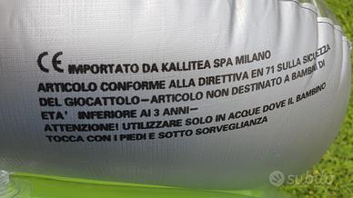 Poltrona materassino gonfiabile da piscina, con schienale e poggiatesta. Nuovo. Confezione sigillata. È in robusto vinile. Peso 1 kg. Misura aperta come materassino 156 cm. Larghezza 70 cm. Altezza, dalla base al punto più alto del poggiatesta, 50 cm. Tre valvole di gonfiaggio: una per ogni base ed una per schienale-poggiatesta. Si può usare come poltrona ripiegando una delle camere d'aria sotto l'altra. In tal caso la lunghezza diventa di 72 cm e l'altezza massima dalla base al punto più alto del poggiatesta diventa 65 cm. Spedizione in scatola di cartone rigido. Ne ho due pezzi nuovi sigillati disponibili.