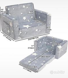 Divano letto pieghevole 2in1 poltrona per bambini, in flanella, per la cameretta, regalo di compleanno o per la giornata dei bambini, per bambine e bambini, grigio con stelle