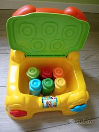 La seduta, divertente base di gioco, è solida e accogliente e nasconde un pratico vano contenitore per le costruzioni.