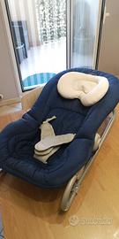 Cedo poltroncina Chicco 0-6 mesi usata ma non consumata né strappata. Possibilità di regolare l'inclinazione dello schienale fino a stenderla completamente. Inoltre si può passare da funzione "dondolo" a "fissa" ruotando il piede posteriore. La poltroncina è dotata di coscino/riduttore per la testa regolabile su 3 posizioni di altezza, e braccio con peluches removibili. Vendo a 10e. Solo ritiro a mano, non spedisco.