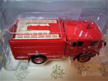 Modellino di camioncino dei pompieri nuovo e sigillato, allegato libretto e corredato di cartoncino pubblicitario di 50 x 35 centimetri.