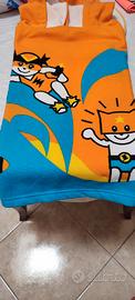 Bellissimo poncho per bambino/a, color arancio, giallo e blu. Perfetto per asciugarli e tenerli al caldo!