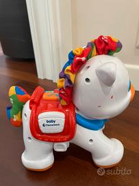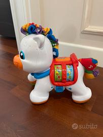 Un adorabile pony che ti segue ovunque! Luminosità di risate garantite premendo il pulsante che attiva effetti sonori divertenti. Quando il pony si muove o i 2 rulli girano, vengono suonate belle canzoni. La criniera e la coda sono realizzati in tessuto morbido per stimolare il senso del tatto del bambino.