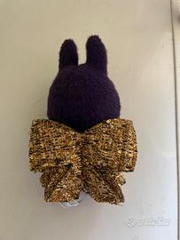 Corpo in peluche viola con orecchie da coniglio, sorriso iconico