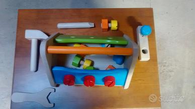 Porta attrezzi in legno contiene martello ,cacciavite, viti ecc.