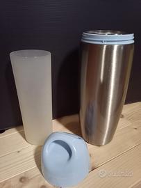 Porta biberon per uscite fuori porta della Chicco in acciaio inox. Usato poco al pari del nuovo. Con apposito contenitore interno per trasporto biberon oppure togliendo la guaina interna può essere comodamente usato come normale thermos per alimenti solidi caldi e freddi o bevande fresche. Tenuta della temperatora caldo o freddo per 4/5 ore. Tappo anti perdite E' dotato di base in materiale antiscivolo. Senza scatola!