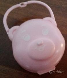 Vendo porta-ciuccio rosa con catenella a gallo per ciuccio