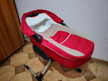 Porta enfant dell'inglesina con piedistallo in metallo del tipo richiudibile, completo di piccolo materassino e copertina.